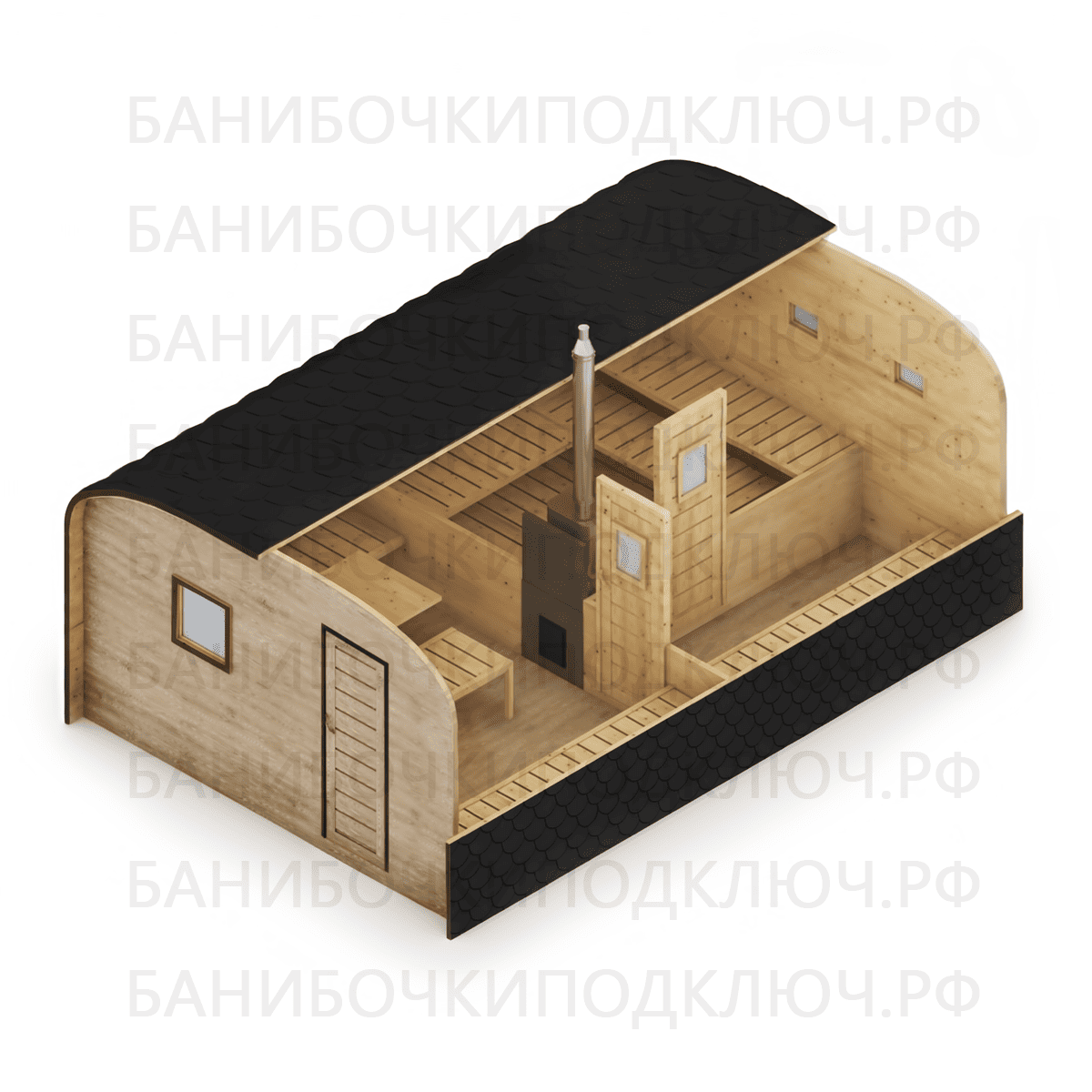 Баня парус 6 x 2,3 м в комплектации "ЛЮКС"